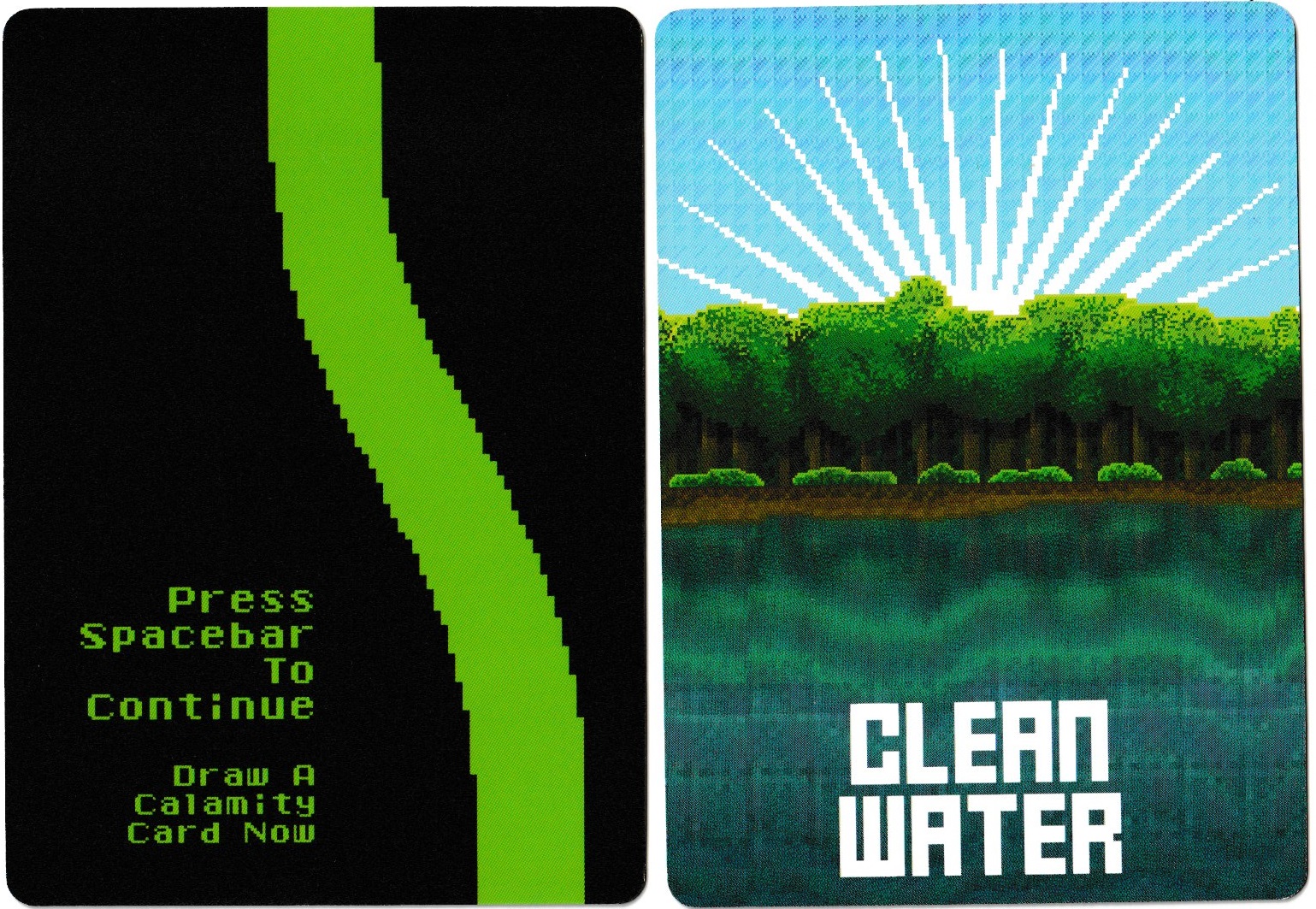 This doesn’t happen in the Oregon Trail card game. When your character dies because you drew a rattlesnake card (instant death, no avoidance), you shrug and say “oh well.” It doesn’t lead you to think about how differently you could have managed your resources or how aggressively/conservatively you’d been pursuing your goal. Like the video game, it’s more to do with caprice than difficulty. And this worked for the video game for a couple of reasons: